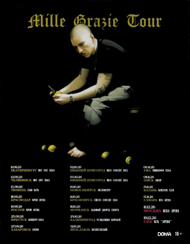 Friendly Thug 52 Ngg объявил о Mille Grazie Tour, который пройдет осенью и зимой 2026 года. Всего запланировано 19 городов, при этом в Нижнем Новгороде артист выступит два дня подряд. В Москве и Санкт-Петербурге шоу состоятся на ЦСКА Арене и КСК Арена, соответственно.