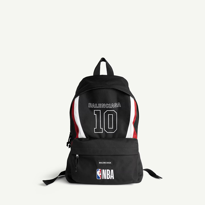 Коллекция состоит из кожаных университетских курток, спортивной формы и рюкзаков в черных, синих и красных тонах, повторяющих фирменные оттенки НБА.